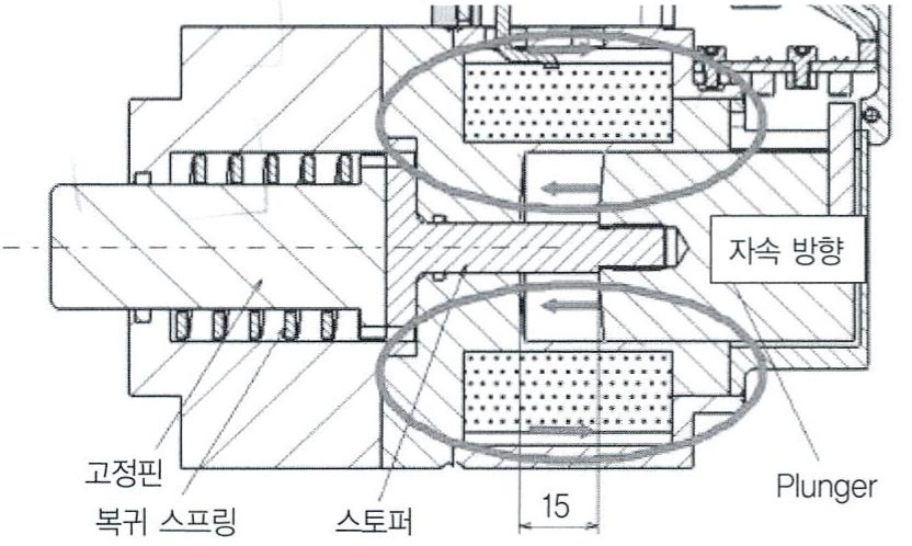 주포 자동고정장치의 간섭을 배제하기 위한 구조물과 이격거리를 확보하기 위와 같이 형상을 수정하기 위하여 설계검토를 진행하였고, 형상 개선 시에도 동등 이상의 작동력이 나오는지 확인하기 위해 전자기 유한요소 해석법을 사용하였다.